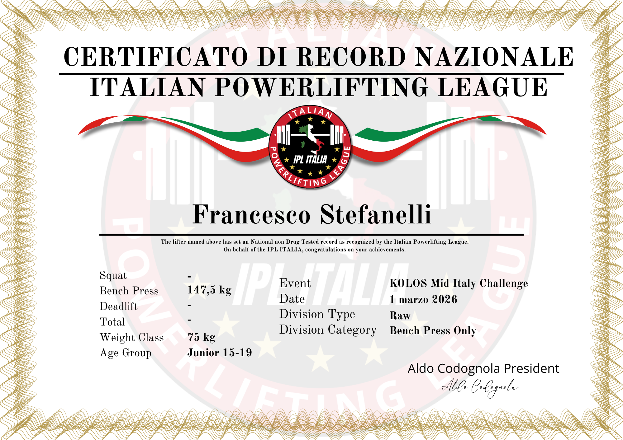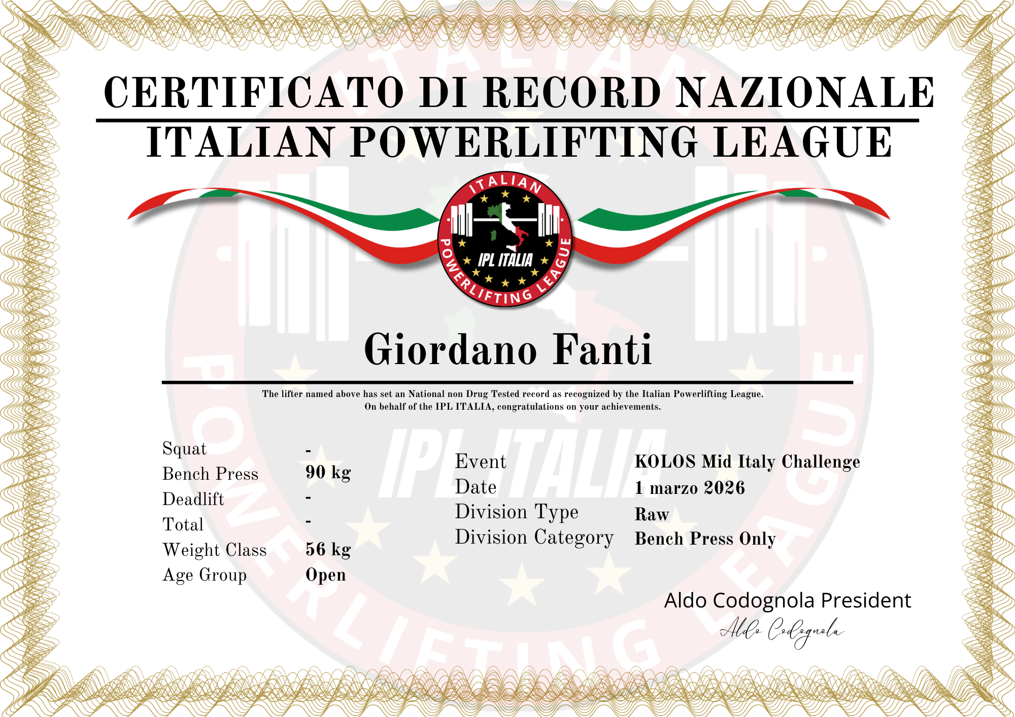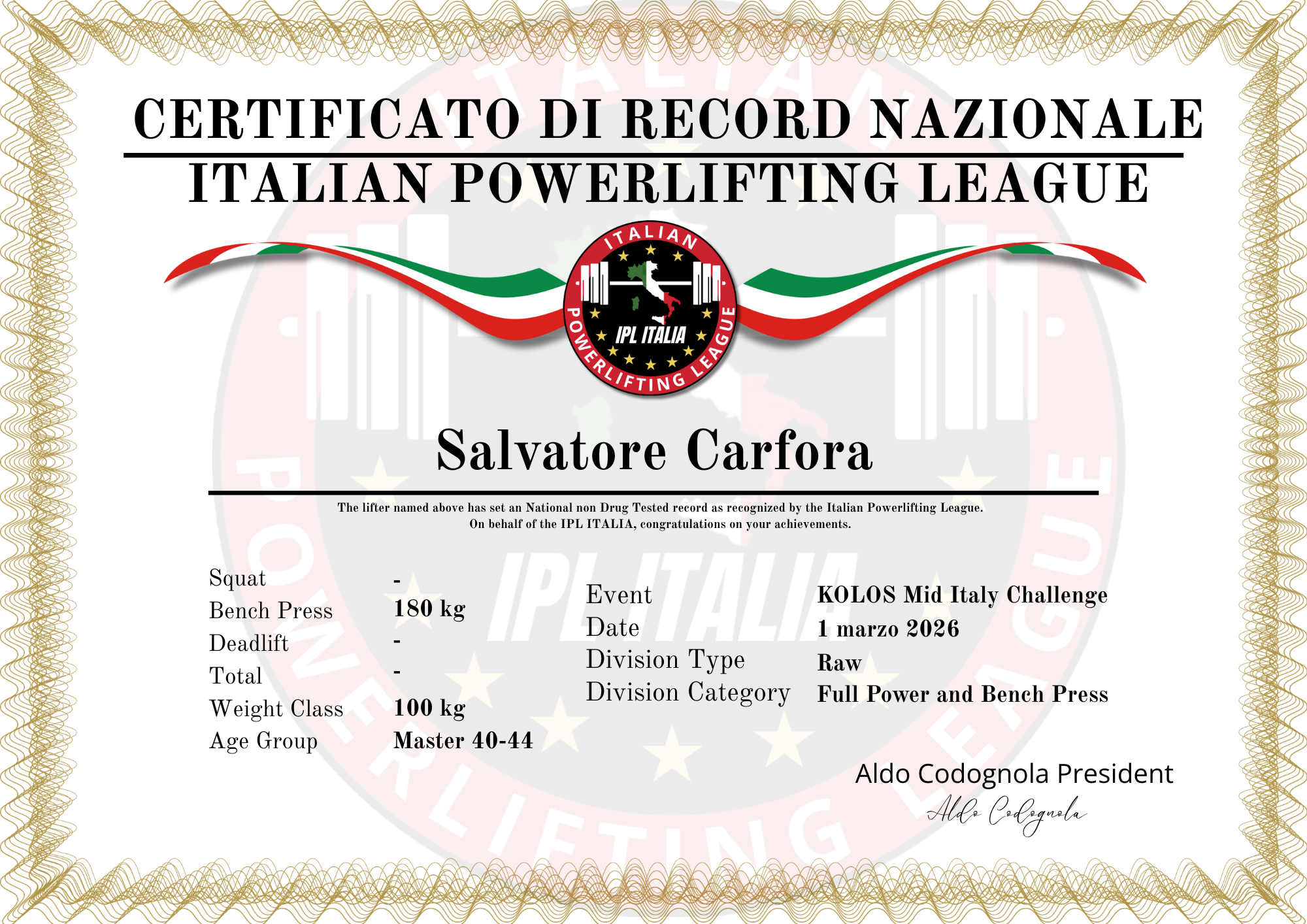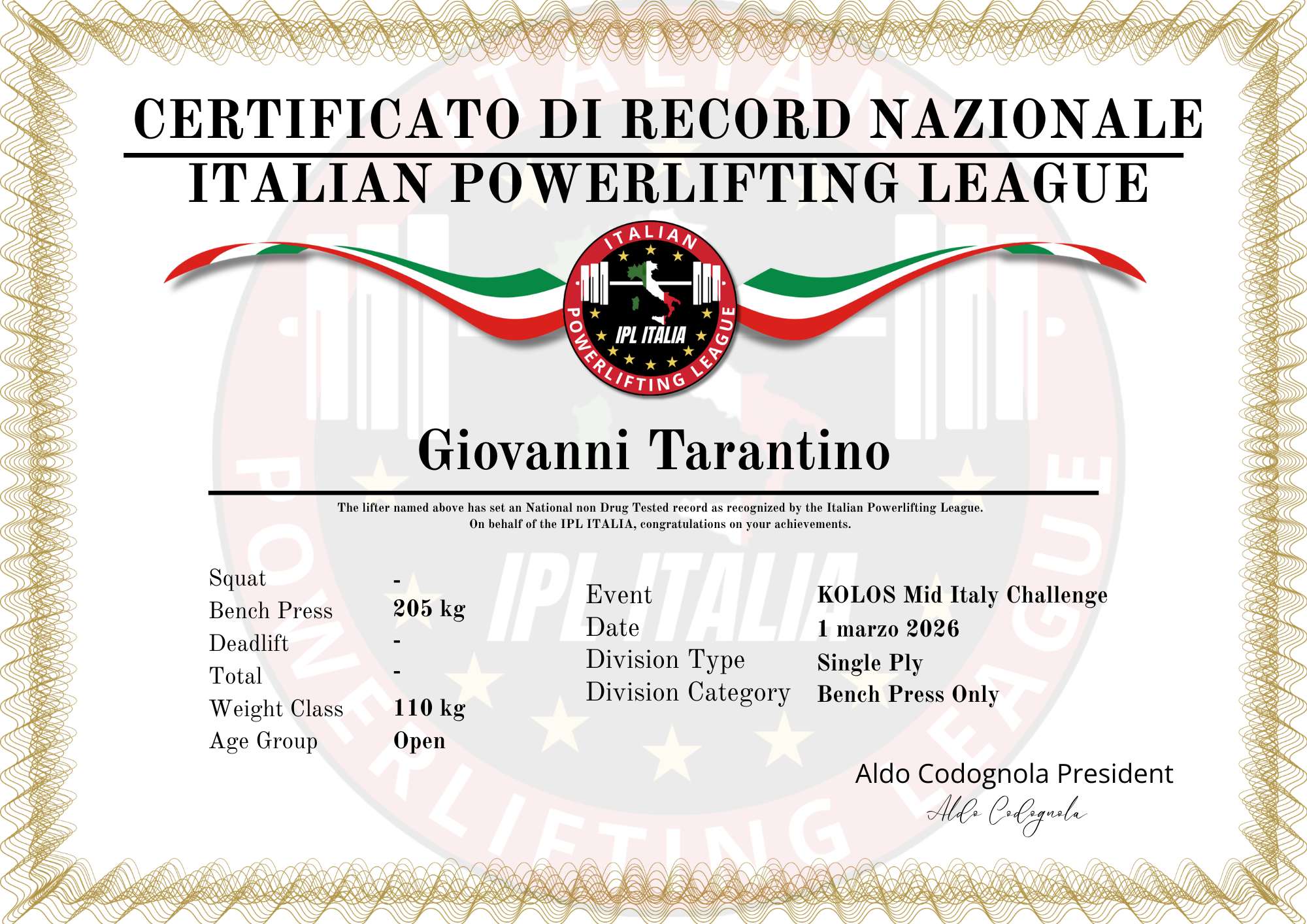 Records maschili bench press